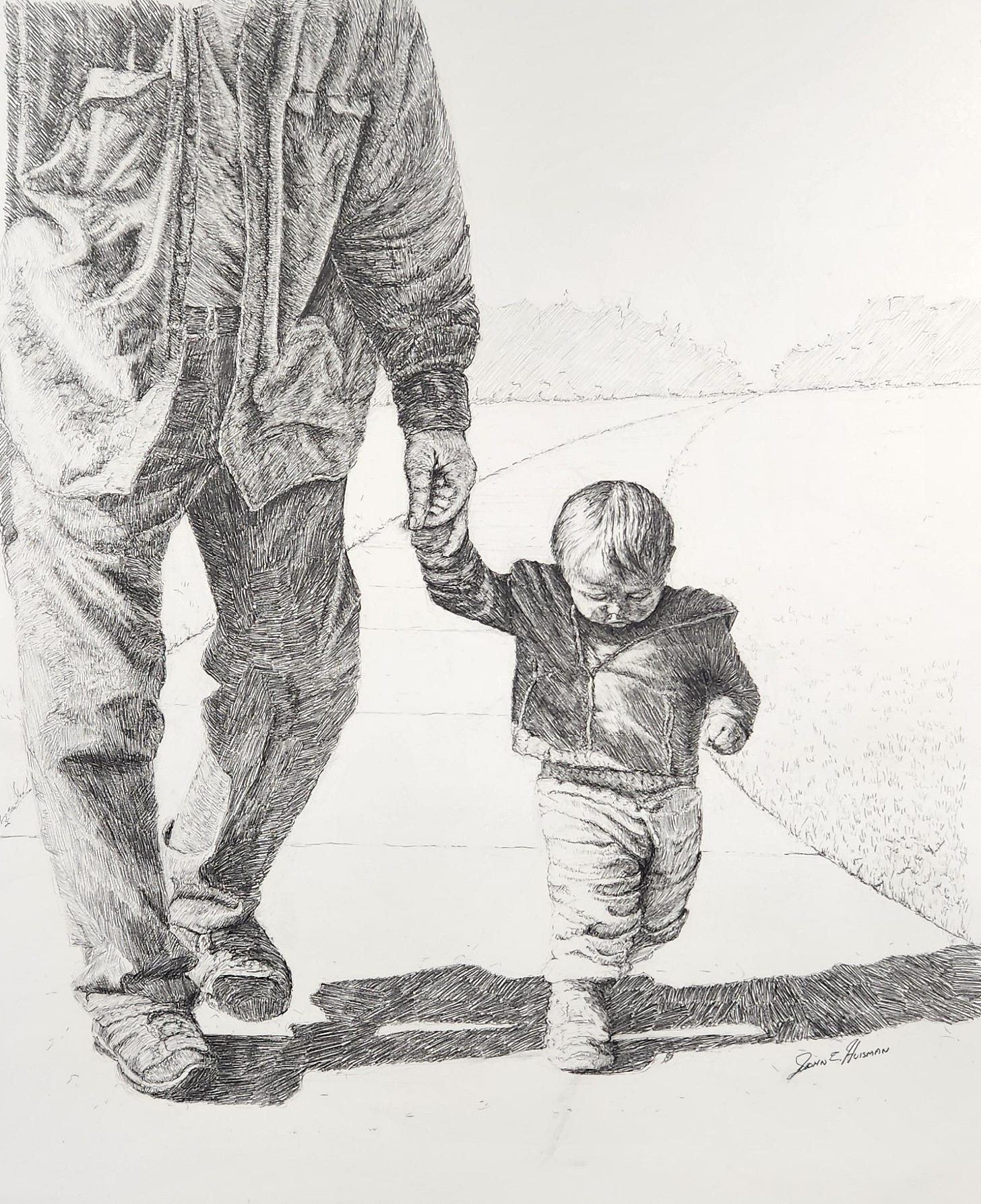 I did an oil painting a long time ago of this idea that I was never happy with but I like how this finished piece turned out. Back to what I enjoy…pencil and lines. This drawing is about 14”x18” in size: