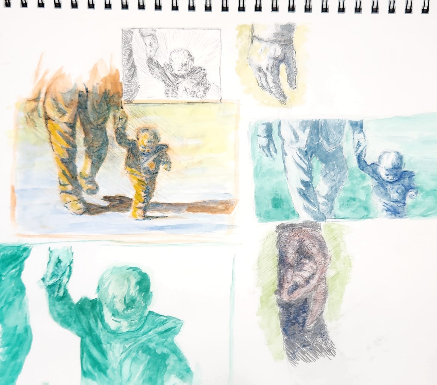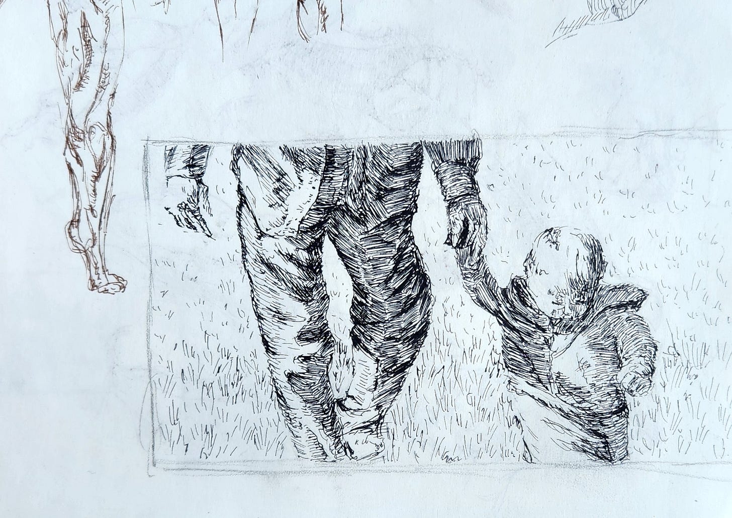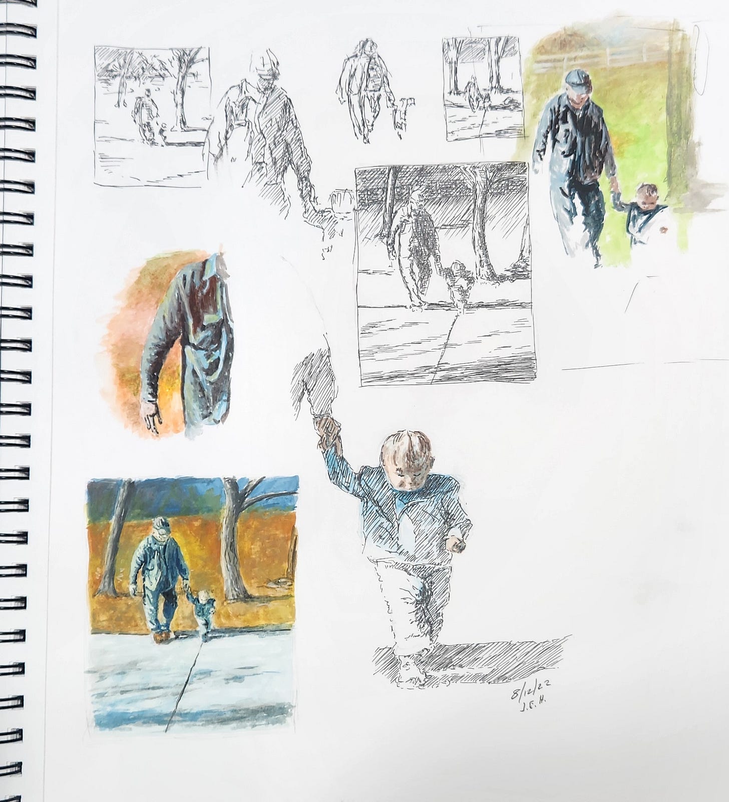 It’s amazing how many times and how long I have been sketching from this one reference photo to try to figure out what is important and what I am seeing and maybe even a little bit about what I want to say, (though I am never really clear on that). Flipping through some old sketch books here are just a few examples of my “thinking” process. There are undoubtedly countless others.